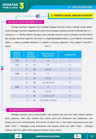 dan bilangan kuantum magnetik. Dari tabel 3.1 dapat disimpulkan bahwa, untuk subkulit s berjumlah