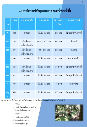 ตาราง 2.8.1 แสดงขอมูลเชงสถตภาพรวมของรานค้าตลาดนํ้าบางนํ้าผึ้ง