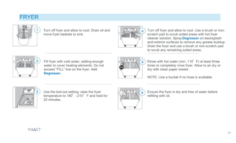 Fill fryer with cold water, adding enough Rinse with hot water (min. 110 ° F) at least three