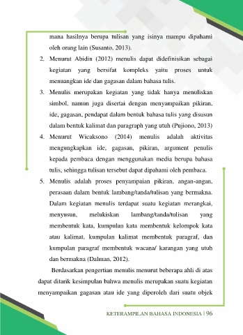 2. Menurut Abidin (2012) menulis dapat didefinisikan sebagai