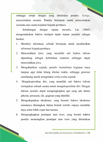 Sehubungan dengan tujuan menulis, Lie (2005)