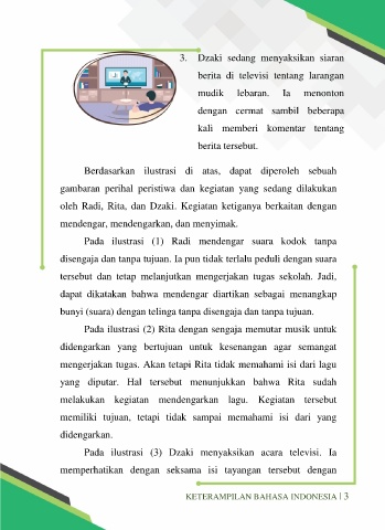 Pada ilustrasi (3) Dzaki menyaksikan acara televisi. Ia