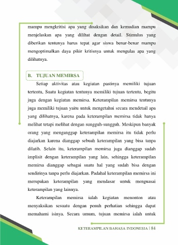 mampu mengkritisi apa yang disaksikan dan kemudian mampu