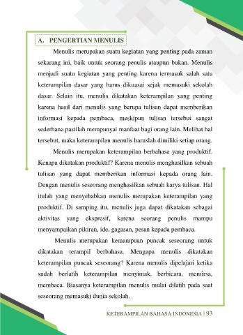 dasar. Selain itu, menulis dikatakan keterampilan yang penting