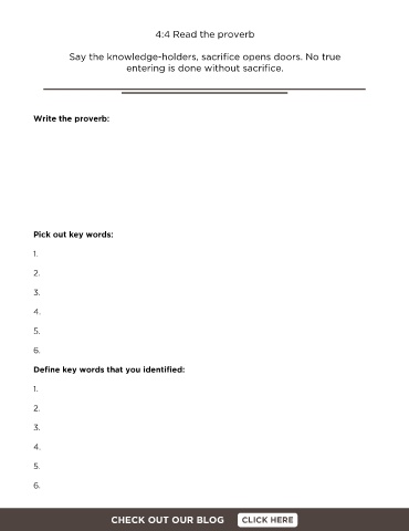 4:4 Read the proverb Say the knowledge-holders, sacrifice opens doors. No true entering is done without sacrifice.