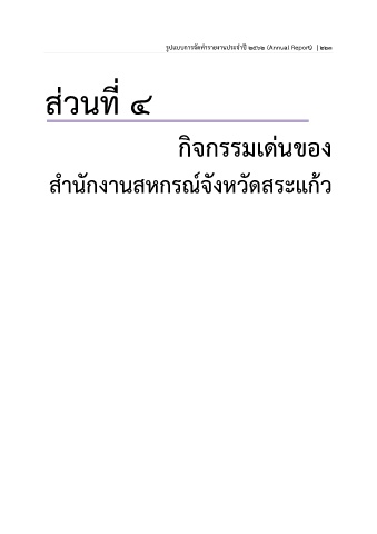 รูปแบบการจัดท ารายงานประจ าปี 2562 (Annual Report) | 223 ส่วนที่ 4 กิจกรรมเด่นของ ส านักงานสหกรณ์จังหวัดสระแก้ว