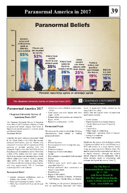 The Chapman University Survey of American • Bigfoot is a real creature - 16.2% • Report themselves as highly religious