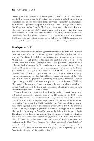 OLPC as a social and political project. As we shall see, the OLPC programme is as