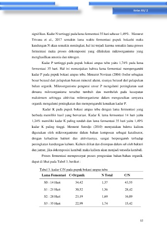 Tabel 3. kadar C/N pada pupuk bokasi ampas tebu
