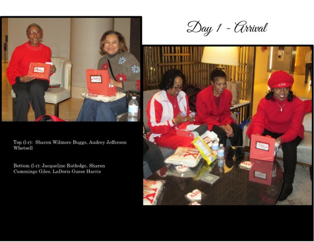 Day 1 - Arrival Top (l-r): Sharon Wilmore Buggs, Audrey Jefferson Whetsell Bottom (l-r): Jacqueline Rutledge, Sharon Cummings Giles, LaDoris Guess Harris
