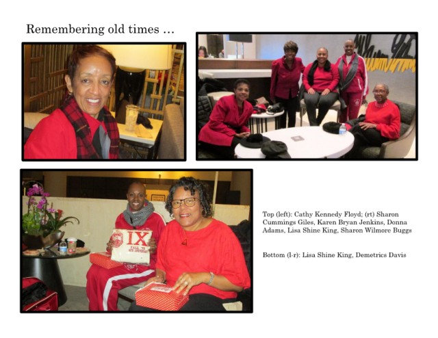 Remembering old times … Top (left): Cathy Kennedy Floyd; (rt) Sharon Cummings Giles, Karen Bryan Jenkins, Donna Adams, Lisa Shine King, Sharon Wilmore Buggs Bottom (l-r): Lisa Shine King, Demetrics Davis