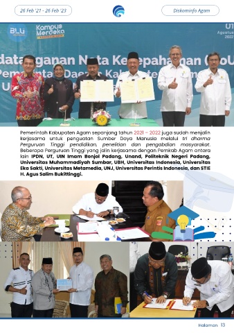 Beberapa Perguruan Tinggi yang jalin kerjasama dengan Pemkab Agam antara