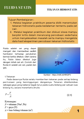 tekanan hidrostatis pada kedalaman tententu pada zat