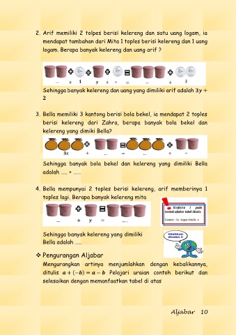 2. Arif memiliki 2 tolpes berisi kelereng dan satu uang logam, ia