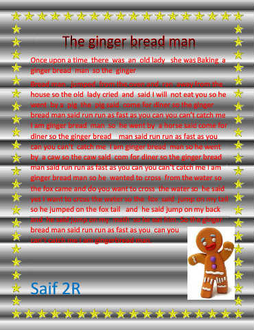 I am ginger bread man so he went by a horse said come for