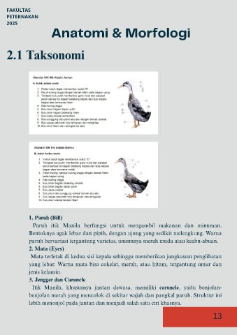Itik Manila, khususnya jantan dewasa, memiliki caruncle, yaitu benjolan-