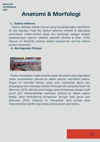 ke alat kopulasi. Pada itik, duktus deferens terletak di sepanjang