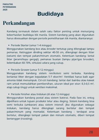 keberhasilan budidaya itik manila. Sistem kandang yang akan digunakan