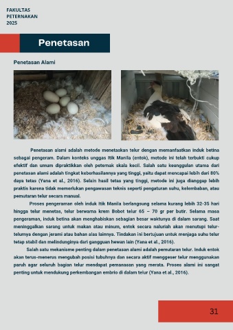 Penetasan alami adalah metode menetaskan telur dengan memanfaatkan induk betina