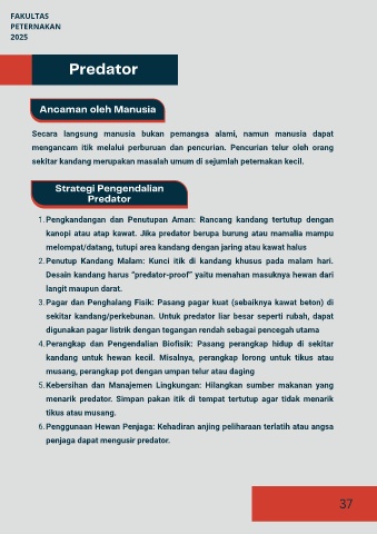 Desain kandang harus “predator-proof” yaitu menahan masuknya hewan dari