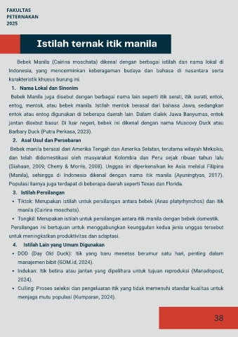 (Manila), sehingga di Indonesia dikenal dengan nama itik manila (Ayuningtyas, 2017).