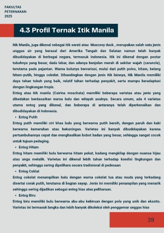 hitam-putih, hingga cokelat. Dibandingkan dengan jenis itik lainnya, itik Manila memiliki