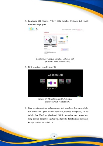 4. Kemudian klik tombol “Play” pada simulasi Collision Lab untuk