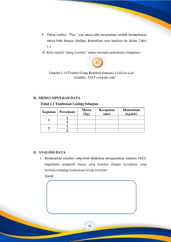 Gambar 1.10 Tombol Ulang Kembali Simulasi Collision Lab