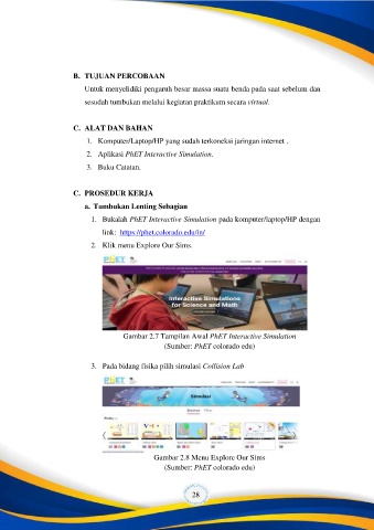 sesudah tumbukan melalui kegiatan praktikum secara virtual.