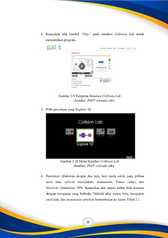 4. Kemudian klik tombol “Play” pada simulasi Collision Lab untuk