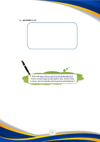 evaluasi, dan kesimpulan pada kegiatan pembelajaran 2