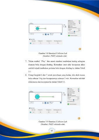 7. Tekan tombol “Play” dan amati simulasi tumbukan lenting sebagian