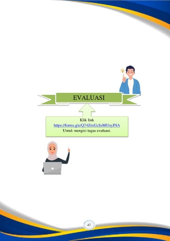 EVALUASI Klik link https://forms.gle/Q74ZrnUcSsMUnyJNA Untuk mengisi tugas evaluasi. 47