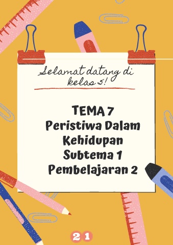 Selamat datang di kelas 5! TEMA 7 Peristiwa Dalam Kehidupan Subtema 1 Pembelajaran 2