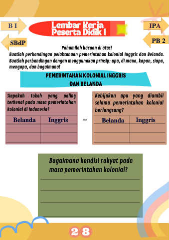 Buatlah perbandingan pelaksanaan pemerintahan kolonial Inggris dan Belanda.