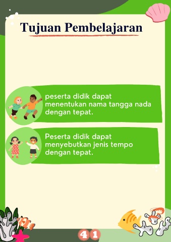 Tujuan Pembelajaran peserta didik dapat menentukan nama tangga nada dengan tepat. Peserta didik dapat menyebutkan jenis tempo dengan tepat.