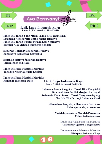 SBdP Lirik Lagu Indonesia Raya PB 5