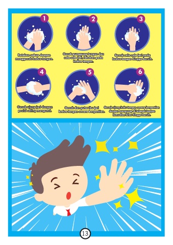 Ratakan sabun dengan Gosok punggung tangan dan Gosok sela-sela jari pada