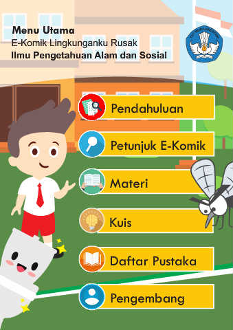 Menu Utama E-Komik Lingkunganku Rusak Ilmu Pengetahuan Alam dan Sosial Pendahuluan Petunjuk E-Komik Materi Kuis Daftar Pustaka Pengembang