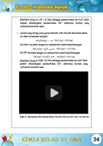 Video 9. Representasi Mikroskopik Reaksi Hidrolisis NH4CH3COO, NH4F, dan NH4CN.