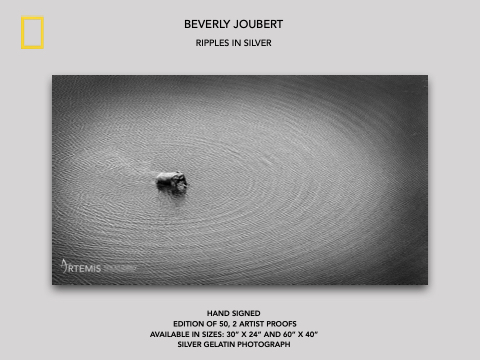 BEVERLY JOUBERT RIPPLES IN SILVER HAND SIGNED EDITION OF 50, 2 ARTIST PROOFS AVAILABLE IN SIZES: 30” X 24” AND 60” X 40” SILVER GELATIN PHOTOGRAPH