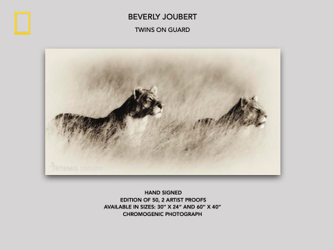 BEVERLY JOUBERT TWINS ON GUARD HAND SIGNED EDITION OF 50, 2 ARTIST PROOFS AVAILABLE IN SIZES: 30” X 24” AND 60” X 40” CHROMOGENIC PHOTOGRAPH