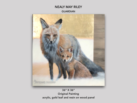 NEALY MAY RILEY GUARDIAN 36” X 36” Original Painting acrylic, gold leaf and resin on wood panel