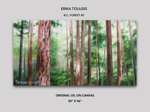 ERIKA TOLIUSIS B.C. FOREST #5 ORIGINAL OIL ON CANVAS 30” X 56”