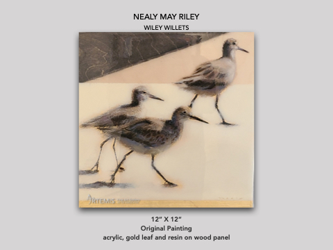 NEALY MAY RILEY WILEY WILLETS 12” X 12” Original Painting acrylic, gold leaf and resin on wood panel