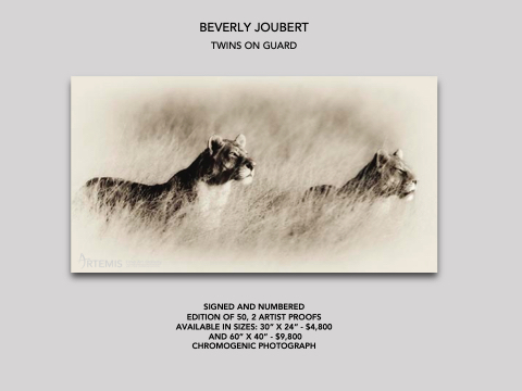 BEVERLY JOUBERT TWINS ON GUARD SIGNED AND NUMBERED EDITION OF 50, 2 ARTIST PROOFS AVAILABLE IN SIZES: 30” X 24” - $4,800 AND 60” X 40” - $9,800 CHROMOGENIC PHOTOGRAPH
