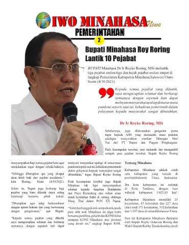 menyampaikan bagi semua pejabat baru agar melayani masyarakat apalagi di masa-masa Tentang Minahasa