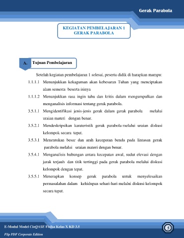 3.5.2.1 Mendeskripsikan karateristik gerak parabola melalui uraian diskusi