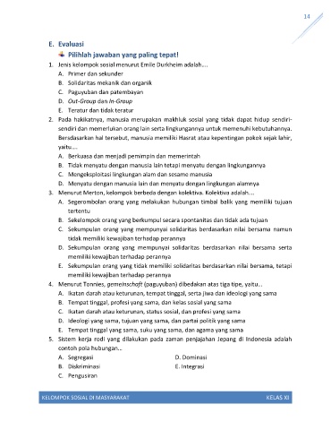 1. Jenis kelompok sosial menurut Emile Durkheim adalah….