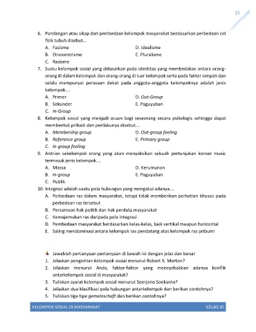 KELOMPOK SOSIAL DI MASYARAKAT KELAS XI